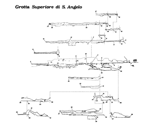 In questa zona — durante la ricognizione dell’agosto 1977 e le campagne dell’aprile e dell’ottobre 1978 — sono state localizzate e rilevate complessivamente 16 cavità, fra cui le due Grotte di S. Angelo (Superiore ed Inferiore), che sono risultate essere le più estese fra le cavità della Calabria finora note.