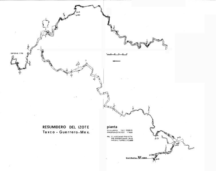 Sorpresa invece al Resumidero del Izote, presso San Miguel Acuitlapan non lontano da Chontalcuatlan sempre in Cuerrero, disostruito, causa una piena, il sifone iniziale provocato da tronchi e sassi, si sono potute rilevare un chilometro e mezzo di gallerie sub-orizzontali interessate da un corso d’acqua, per una profondità totale di 176 metri, superando così i primi cento metri di galleria esplorata dagli americani negli anni settanta.