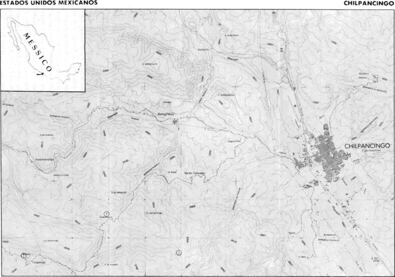 Ricalpestato un pezzo di asfalto, C. Lazcano, P. e M. Tapie Vizuet proposero di lasciare il Chiapas per una zona parzialmente esplorata presso Taxco nello Stato di Guerrero. Ripercorsa la strada per Mexico City, in due giorni salivamo ai piedi del massiccio denominato «Plaza de Gallo», sul quale i messicani hanno esplorato alcuni abissi il più profondo dei quali misura oltre 400 metri. In dieci giorni di permanenza sull’altipiano che varia dai 2000 ai 2400 metri sul livello del mare, con Ramon Espinase esplorai varie cavità poco profonde, tutte interessate da recenti fenomeni di riempimento, anche nei pozzi verticali molto ampi. Individuammo uno dei probabili inghiottitoi che dal versante sud-ovest del massiccio alimenta il collettore sotterraneo (ancora sconosciuto) quale scaturisce con un paio di centinaia di litri al secondo a parecchi chilometri di distanza presso Ixtateopan de Cuauhtemoc. Alla risorgenza una pompa per l’approvvigionamento idrico sbarra la strada a qualsiasi esplorazione; l’antico livello fossile una cinquantina di metri più a monte è interessato da fenomeni di crollo che non permettono nessun collegamento, mentre nell’inghiottitoio un piccolo sifone attende di essere forzato.