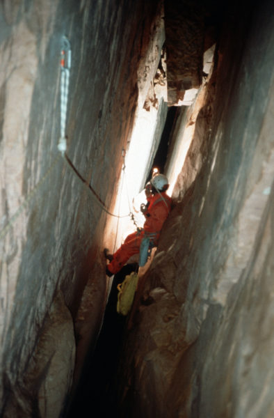 Scendendo lungo i pozzi che separano il primo collettore dalla frana della Sala Giunzione (-200) Sistema Auyantepuy Noroeste (Foto P. Pezzolato)