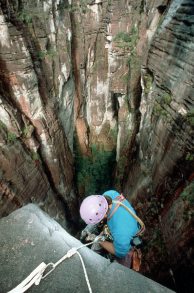 Da notare che date le condizioni climatiche della zona, alcune di queste montagne sono state localizzate solo molto recentemente; è il caso del Cerro Neblina, al confine tra Venezuela e Brasile (3.018 metri d’altitudine), scoperto grazie alle foto radar che hanno “bucato” le nubi perenni che coprono le cime e i fianchi di queste montagne. Negli anni ’70 viene istituito il Parco Nazionale di Canaima, a protezione di un’area dimostratasi negli anni una realtà unica al mondo dal punto di vista ambientale e scientifico. E dello stesso periodo, da parte della Società Venezuelana di Speleologià (Galan, Colvèe e compagni), l’esplorazione di alcune cavità nel Cerro Altana, piccolo tepuy caratterizzato da un grande traforo che lo attraversa (la Cueva Autana, 653 metri di sviluppo).