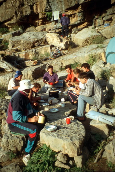 Si inizio così a “gustare” il torrido clima uzbeko, stipati in 15  in un miniappartamento dove si doveva – con 30°C e passa all’ombra – preparare e organizzare l’enorme quantità di materiale e alimenti, rigorosamente made in CSI. Poi partimmo alla volta di Shahrisabs, viaggiando di notte in autobus per non patire il caldo; qui attendemmo I’arrivo dell’elicottero, un vetusto e sgangherato MIL8, simile più a un cetriolone arrugginito che non ad una macchina volante in grado di portare noi 15 più le nostre povere cose oltre i 4000 metri di altezza e depositarci, oltrepassato il Baisun Tau, su uno spiazzo sabbioso a poche decine di metri dal campo base.