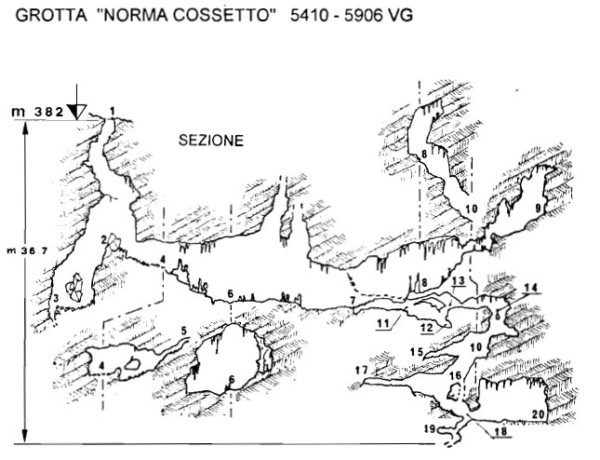 Questa grotta, aperta da alcuni grottisti con paziente lavoro di scavo in una valletta nelle colline immediatamente alle spalle di Sgonico, è stata dedicata, per volontà degli scopritori, a Norma Cossetto, martire della ferocia razzista che il 5.10.1 943 all’età di 23 anni venne uccisa e infoibata, divenendo quasi il simbolo di tutti gli infoibati istriani. L’ingresso s’apre presso una traccia a lato di un solco torrentizio asciutto che si diparte sulla destra del sentiero che da Sgonico conduce verso il Col dell’Agnello.