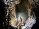Comunque, nonostante quanto sopra, iniziai la discesa nel pozzetto posto sotto I’ingresso in uno stato alquanto ansioso. Come detto prima, questo pozzetto è piuttosto malagevole e per raggiungere il pozzo successivo bisogna fare qualche contorcimento. Fatto sta che a un certo punto mi trovai completamente incastrato tra le pareti e la base del pozzetto senza la possibilità di scendere ulteriormente o risalire. L’ansietà di prima si trasformò quindi in rosso furore per la situazione nella quale, come un novellino, mi ero venuto a trovare. Dopo due o tre minuti di sforzi inauditi riuscii a sbloccarmi. Ero madido di sudore, tremante di rabbia e ansante per la fatica spesa per liberarmi da quel punto critico.