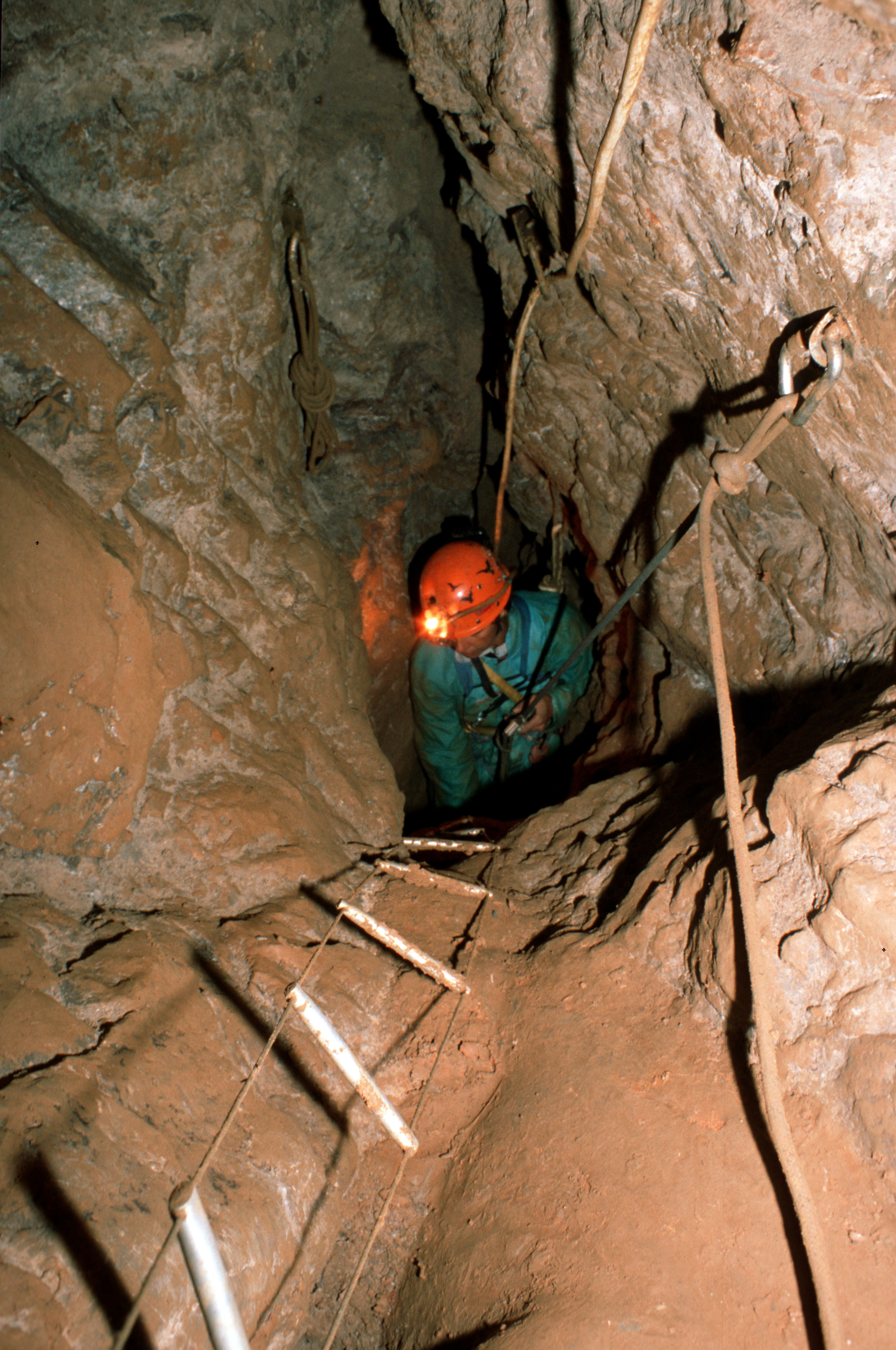 Verso la primavera del 1999, dopo due anni dall’inizio dei lavori, finalmente entrammo in una serie di pozzi “veri” (nel senso di pozzi tra due pareti di roccia) lasciandoci alle spalle circa 90 metri di grotta dove per una buona parte è meglio passare evitando di guardarsi troppo attorno.
