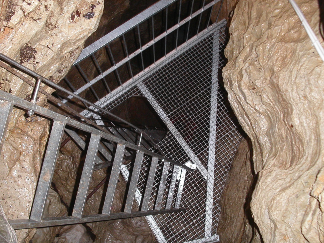 E’ stato fissato a destra delle due scale di accesso un corrimano di sicurezza in acciaio costituito da una serie di tondini metallici distanti un metro l’uno dall’altro, a cui ci si può ancorare durante la visita come fare una semplice ferrata in montagna.