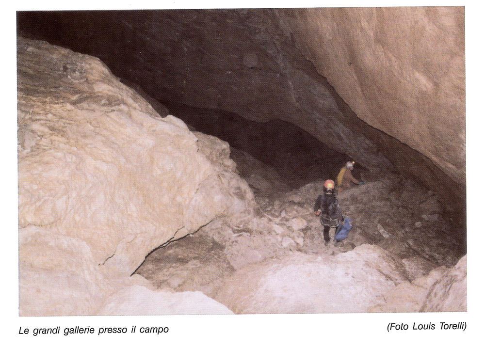 Quando lo vedo chiedo a Rok: ma c’è pure un meandro? E lui si infila dentro silenzioso, e tutti dietro. Il caninesco meandro (maldido !) ci molla dopo centocinquanta metri credo. Sbuchiamo in una salina piccolina fa molto freddino. I nostri ciceroni ci raccontano che esattamente in questo ombelichino della montagna diversi anni fa un gruppo si “smarriti definitivamente” incapaci di reagire, rimasero incastrati fino all’arrivo dei soccorritori, moltissime ore dopo. La prosecuzione non è evidentissima un abbassamento sotto ad un masso porta ad un salto, (c..zzo noi l’avremmo trovata!) ; (ci attacchiamo ad una cordina piuttsto vecchina e malandata, pure semi trancaiata), la ripariamo con un nodo. Il tratto seguente è veramente peperino. Seguo Riki, vedo dei led e qualche carburo allontanarsi verticalmente sotto le mie ormai anticate “Trezeta” in goretex. E la corda? Evidentemente sono rimasto “ancorato” a degli schemi esplorativi e di progressione antiquati, le corde sono degli strumenti non sempre necessari di questi tempi. Penso.. Ma non le abbiamo introdotte noi a metà settanta? Le superstatik? Roba vecchia .. adesso se ne fà anche a meno. “Gasati come cavalli pazzi” dietro le “fortissime” scivoliamo dentro ai pozzi, vere e proprie strutture verticali, uno è una fessura umida e molto stretta, sgonfiamo i polmoni e giù nel nulla. La circolazione d’aria si fa rabbiosa. Belle strutture inclinate condotte compatte ci trasportano in ambienti più ampi. La bruna aspetta sotto un salto, la risalita è un bel quarto + quinto – senza corda ..la vedo perplessa, e allora approfitto, le faccio “assistenza”. Risollevati gli animi, ci infiliamo in enorme un specchio di faglia, siamo verso la zona del campo, la parte delle gallerie mediane. Entriamo nel nodo cruciale della grotta, continuo a pensare ai primi che fecero TUTTO AL CONTRARIO. Dalla zona del campo si snoda il ramo del fondo e la grotta è alquanto complicata, stile piccolo pireneo. Le nostre guide ci mostrano da dove si prosegue. Meno male che loro la strada la conoscono e via tutti dentro nel budello fino a qualche attimo fa invisibile che sembra tanto scavato artificialmente o perlomeno allargato a misura umana. Si riprende un’altra galleria inclinata l’altimetro però parla ancora di qualche centinaio di metri da superare.. sembra di aver sceso di più ma questo capita in grotte così, si perde il “dislivello”…Il gruppetto si riunisce di nuovo. Davanti si restringe a destra si risale e chiude. Dean non ricorda bene, Rok và a sinistra, lo seguo, ma non sembra buona, ci sono un sacco di segni di gente che ha ravanato come noi. In realtà siamo su delle condotte alte che in qualche maniera (lo scoprirò poi dai rilievi si raccordano alla via d’uscita). Passiamo un’ora a sudare. Non allarmati ma sudati, le bionde e more sono diventate silenziose… finchè riesplorati contovoglia alcuni rami secondari Riki e Jana (la mora) cadono in una crepa sotto il pavimento, la Poloska ci richiama all’ordine..avanti march..!! Un improvvisa ritorno di memoria investe tutti, me compreso che son li per la prima volta, e vediamo spalancarci sotto ai piedi la via principale al fondo valle, la crepa è profonda due metri ed è l’inizio del chilometro che ci separa dai crolli esterni. Il tratto che percorriamo è fossile, percorriamo quei tratti di gallerie di discrete dimensioni che sicuramente eccitarono i primi esploratori portandoli al cuore della montagna. Le ultime centinaia di metri sono spettacolari, si legge la morfologia e l’escavazione dell’acqua, i suoi depositi fini e grossolani, e poi siamo usciti. Era da un po’ che non attraversavo. E’ sempre un’altra cosa uscire dalla pancia della montagna che non riemergere sempre dalla sua testa. Ci raduniamo all’uscita ed una calorosa stretta di mano ci accoglia fraternamente.
