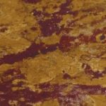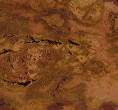 Bauxite compatta, di media durezza, di colore variegato dal rosso bruno al giallo beige chiaro con sfumature caratteristiche di una diffusione minerale di tipo plastico che ricorda forme di distribuzione plasmatica (vedi fig.10).