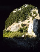 Ho eseguito una ricerca particolare in una risorgiva fossile a nord di Baška. La cavità è raggiungibile con parziale arrampicata (fig. 18) ma né all’interno né sugli affioramenti circostanti sono rintracciabili segni che rivelino sacche bauxitiche. Un giacimento l’ho rintracciato 150 metri sotto la cavità, a valle, in corrispondenza di una faglia, a circa 200 metri dal contatto tra calcari eocenici e flysch (fig. 21).