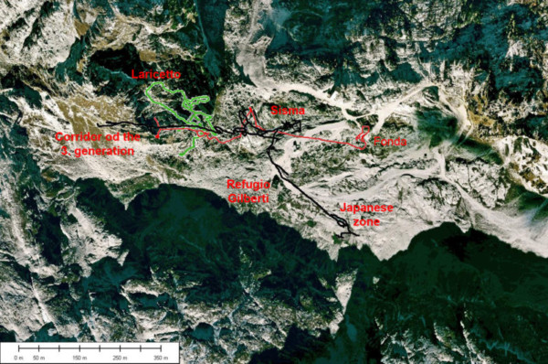 The Gortani system is not so far, 4-500 meters onto north, and the development of the two systems is very similary. Both has fossile zone between 1300 and 1450 a.s.l, and active water collector around 1100 meters above the sea level, so the connection of them would be hopeful, also if right now we did’t find anything to the direction to there.