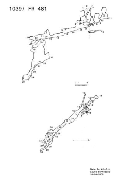 Dati catastali: 1039/ FR 481 CTR 1:5000 067022 Pulfero 13°28’48”0 – 46°09’56”7 (GPS), quota ingresso m 281, sviluppo m 58, profondità m 32, profondità pozzo accesso m 5, pozzi interni m 10, rilevatori: Umberto Mikolic – Laura Bertolini 10-04-2009.