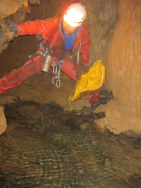 Franz trincava gotti di nero Terrano acido che era entusiasmante vederlo, Gino tirava su “uno”, Alex ridacchiava tra le cacate di mucche e io bestemmiavo appresso la solita stele partigiana del desolato altipiano della Bainsizza, qualche annetto dopo il 1925, anche dopo il 1945 ad esser precisi, ma qualcuno non se n’era ancora accorto. Sapete già (Progressione 54) che dormivamo in una ex bettola/bordello, posto d’altra parte degnissimo per laidi come noi. Franz indicò questo bell’ingresso posto in un prato a colline ondulate, ancora pesto dalle granate italiane delle “prima” ma incredibilmente quieto e silenzioso per ragazzi di città come eravamo noi. Entrarono per primi “Gino” e “El longo” al termine di un cunicolo decisamente ventoso a continuare le disostruzioni caserecce dei tipi di Bate, (simpatici imbriagoni per un certo periodo prestati al grottismo) ma i nostri non riuscirono a passare. L’aria si però che passava, arrogante pure. Nell’agosto 2007 al DVP in qualche classico nostro campo estivo Canin, arrivo l’sms di Franz, stile “passati e trovati 300m nuovi”….l’infamone era andato da solo e, scavato l’ultimo tratto nell’argilla secca, era passato….bella notizia in ogni caso, eravamo pronti a farci benedire dai santoli della Commissione per tornare ai loro passi. Tornammo, varie volte, ed effettivamente era stata aperta una bella finestra sulla Bainsizza di sotto, in questa cavità che continuava in ambienti non vastissimi ma con speleotemi curiosi e nuovi, a doppio livello attivo/fossile. Proseguimmo nel conclamato per circa 300m tralasciando pozzetti e passaggi attivi ostici, un bigoletto in discesa ci portò ad un livello fossile abbassato dove sembrava che la gita avesse fine. Gino aprì, noi scendemmo, ora attivo a risalire, ci rendemmo conto che stavamo tornando indietro, get back!, ma il passaggio dell’acqua non corrispondeva proprio a quello di un corpo umano: Gino n’altra volta si eclissò a livello del pavimento e sparì….e non tornò se vogliamo dirla tutta. Franz ed io andammo a prelevarlo oltre una strettoia che franò al suo passaggio, lasciando libero giusto un pertugio per passare trapano ed attrezzi (che per caso avevamo con noi…) al nostro dilà oltre, che si aprì da solo la via verso l’uscita e la banale umanità. Il “Nuovo Mondo” per Gino ebbe le sembianze di me e Franz infangati e slavazzati…