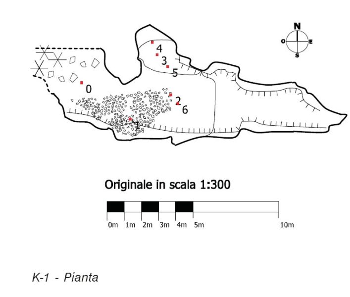 K-3 | 42°22’55.25″N 19°59’34.20″E | 2196 slm | 04/09/2014 Corazzi | Breve vano di dreno idrico, chiuso da ghiaie a -5m. |