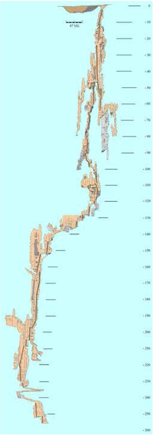 In febbraio viene spostato il cantiere da -225 (grande muro eretto alla base del P.22) al ripiano fra il P.8 ed il P.4, quota -250, sito ove vengono raccolti anche tutti gli attrezzi di scavo (sino ad allora distribuiti fra il grande muro, la Curva de Glauco e il cavernicchio ex P.3 a quota -240). I due rilevatori – Ciano e Pino – dedicano parte di una giornata di lavoro al rilievo del rametto laterale che parte a -205: piccolo pozzo (già visto da Roberto qualche anno prima), nessun alito indicativo di ambienti nascosti, ma pare proseguire, a metà altezza e sul fondo, con l’inizio di un meandro piuttosto stretto: sarà da vedere meglio, ma per il momento viene lasciato in attesa. A fine febbraio si scende nuovamente sul fondo, a meno 256, per scavare, ma non arriva corrente oppure il Makita è guasto: si recupera l’ordegno per una revisione. A fine maggio si ritenta, ma bisogna cambiare la linea elettrica. Vengono acquistati 350 metri di cavo nuovo per la cui sistemazione si impiegheranno tre sabati: 19, 26 giugno e 3 luglio (uscita n. 700 in questa grotta), quindi si ricominciano gli scavi (e gli allargamenti dei punti stretti dei cunicoli Furio 1° (da -235 a -238) e Furio 2° (da -240 a -243).