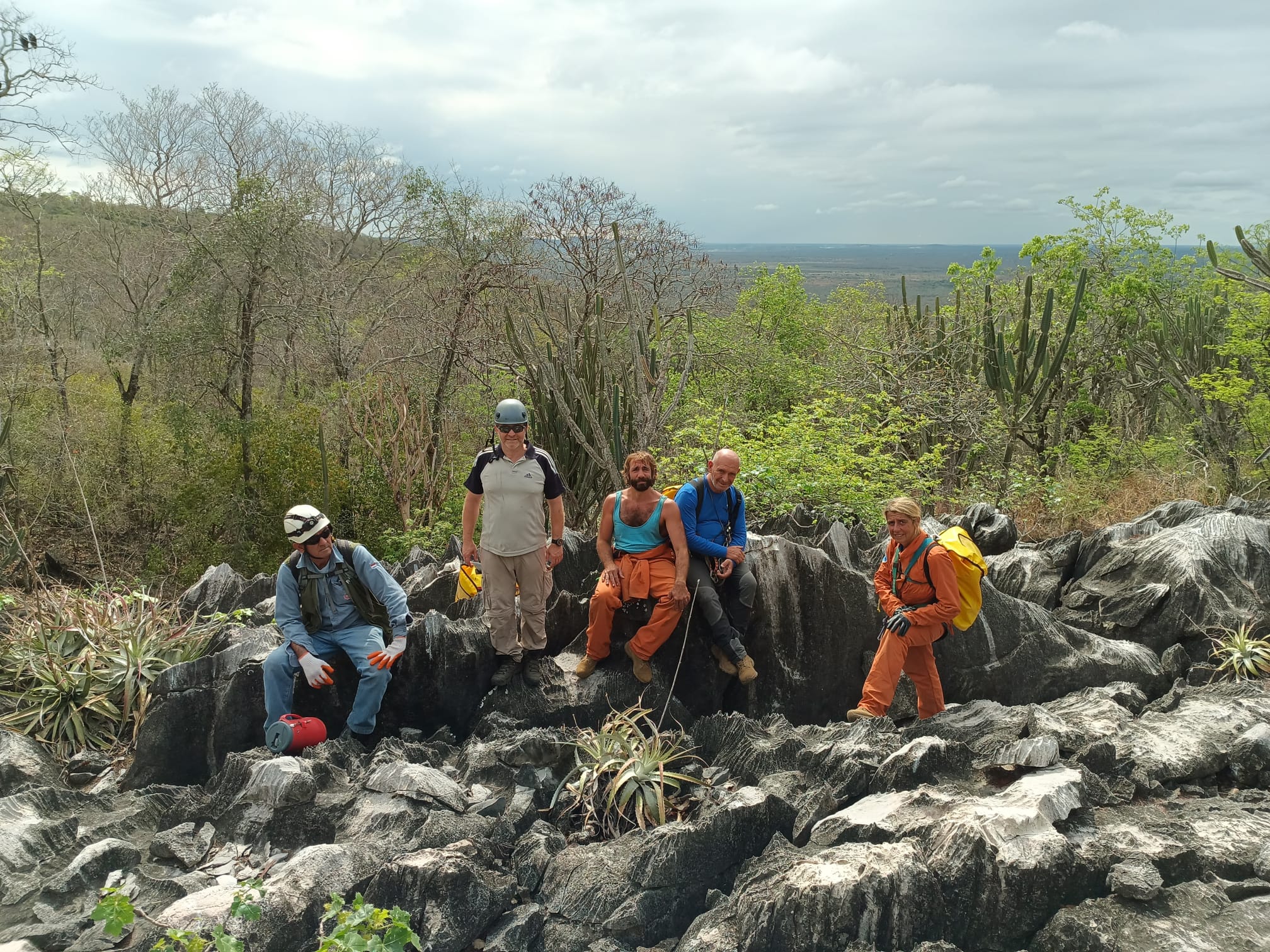 Seguendo con cieca fiducia la nostra guida locale attraversiamo diverse zone che presentano una morfologia tipica carsica con ampie doline che avrebbero meritato più attenzione ma il passo spedito e sicuro della guida ci fanno ben sperare che sappia dove ci sta portando. Dopo circa 3 h di “giungla spinosa” arriviamo finalmente in cima al Cerro dove la nostra guida ed il suo aiutante hanno un momento di sconforto in quanto non riescono a individuare la grotta a loro nota. Ci abbandonano in cima al Cerro con la promessa di batter zona da soli in modo più rapido per poi tornare a prenderci; speriamo nel meglio anche se un minimo di traccia digitale avevamo registrato: non si sa mai.