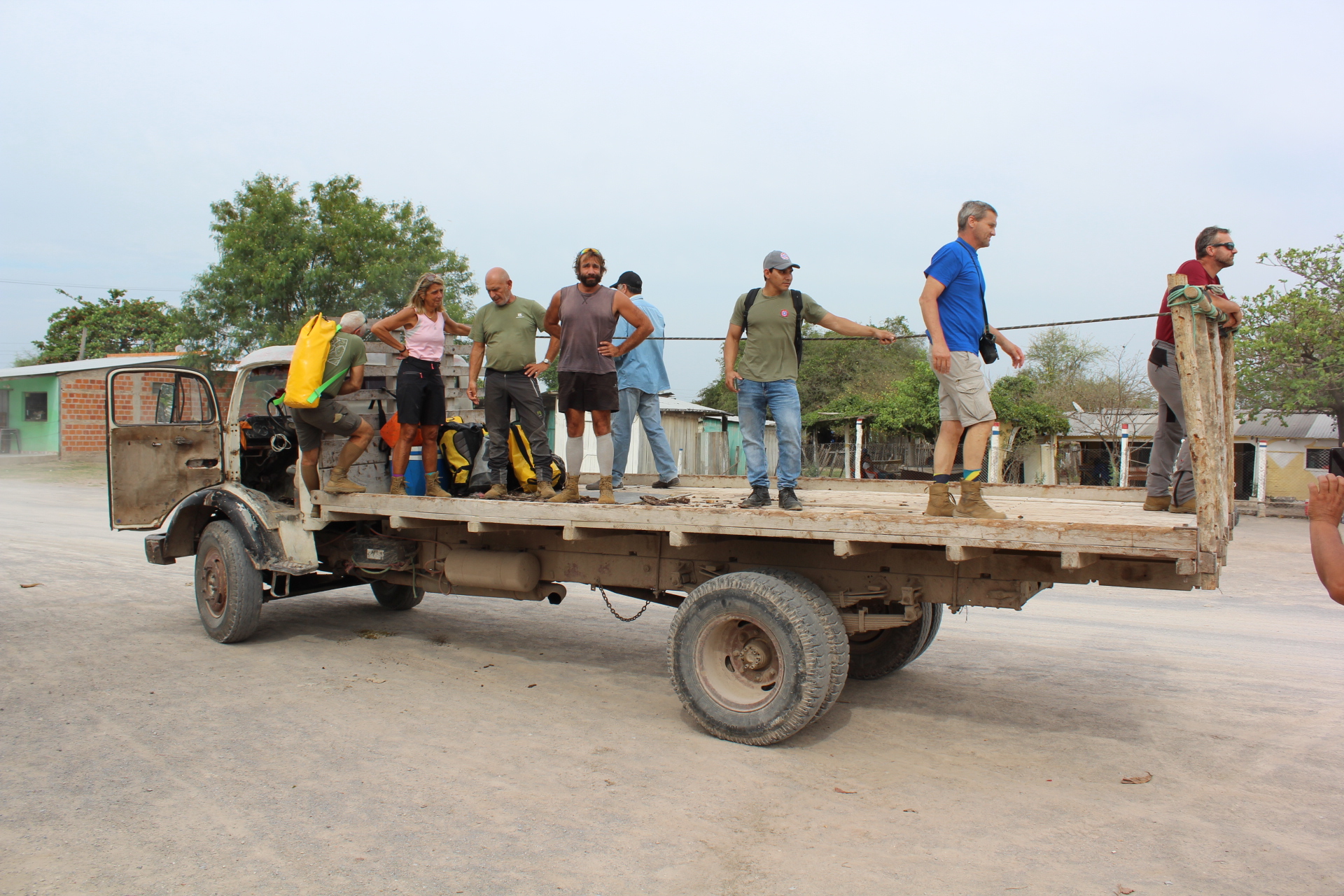 07 settembre finalmente qualcosa si muove e Don Francisco ci organizza una escursione in una grotta in zona Puerto Ita Cua a 80 km da Vallemì dove a sua detta si apre una risorgiva labirintica e mai esplorata interamente in quanto gli ultimi esploratori si erano addentrati per molte ore senza poter raggiungere il fondo. Il tutto ci pare molto suggestivo e promettente ma visti i precedenti questa volta freniamo un po’ l’entusiasmo. Il viaggio di avvicinamento è pura avventura in quanto dopo aver raggiunto Puerto Ita Cua per strade sterrate totalmente disastrate e oltrepassando alcuni posti di frontiera locale presidiati da improbabili guardiani che ci fanno passare senza pagare il “dazio” solo grazie ai loghi ministeriali che abbiamo su uno dei pik-up, dopo una lunga attesa arriva il nostro mezzo di trasporto, uno sgangherato autocarro per il trasporto della legna sul qual pianale ci accomodiamo tra il divertito e il preoccupato viste le condizioni delle tavole piene di buchi dove potevi finirci dentro a causa dei sobbalzi del terreno più che accidentato.