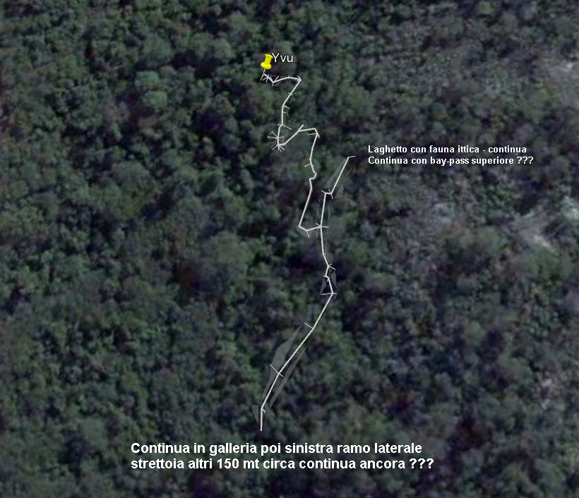 Una sola battuta di zona nell’area di Itacua a qualche ora di pulmino da Vallemì, ha permesso di visitare una antica risorgiva posta a metà costa dell’immancabile “Cerro” che nella parte iniziale era già nota ai soli locali e frequentata per la presenza di acqua potabile. Questa cavità nota con il nome di Y Vu (la sorgente) è stata esplorata per oltre 350 mt (260 mt rilevati) scoprendo alcune interessanti prosecuzioni e presenza di profonde pozze d’acqua con fauna ittica di ignota provenienza. Possiamo ipotizzare un trasporto aereo sui “Cerri” di pesci in periodo riproduttivo dal vicino fiume Paraguay dovuto agli uccelli predatori le cui uova in qualche modo fortuito sono state poi trasportate dalle acque all’interno della risorgiva dove si sono potute sviluppare nei laghetti interni in piccoli avannotti.