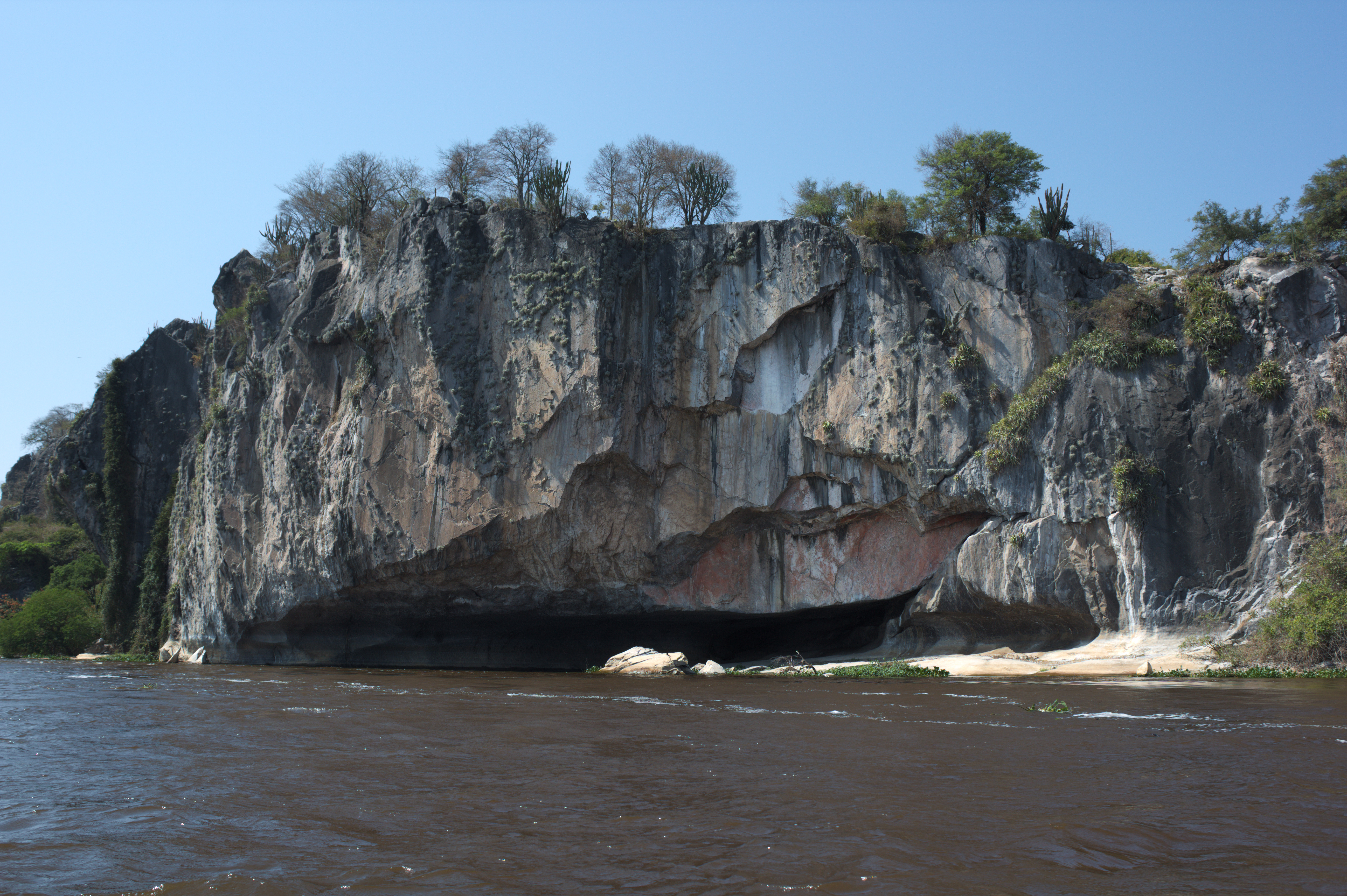 Il 01 settembre dopo una nottata di pioggia tropicale decisamente intensa, ripieghiamo sulle grotte e scavernamenti che ci vengono indicati lungo il fiume Paraguay; alcuni noti e frequentati dal turismo locale altri poco noti. Con simpatiche piroghe di alluminio condotte da improbabili “capitani locali” ci avventuriamo nella forte corrente del Paraguay ammirando la meravigliosa vegetazione locale fino ad approdare in una spiaggetta nascosta dove scarichiamo tutto il materiale per poi visitare tre piccole caverne mai mappate dai locali che chiameremo CT1,2,3 per poi spostarci all’ultima caverna, questa nota e conosciuta dal turismo locale e denominata Kamba Hopo.
